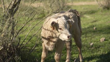 Isabel y Lidia podan la zarza para proteger el pastor eléctrico