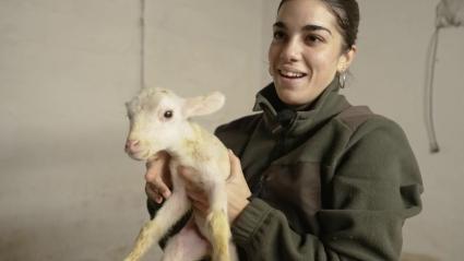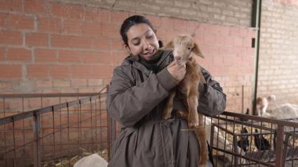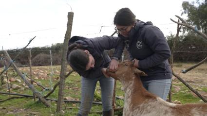 Iris, amiga de María Mora, le ayuda a peinar a su caballo Inaghi