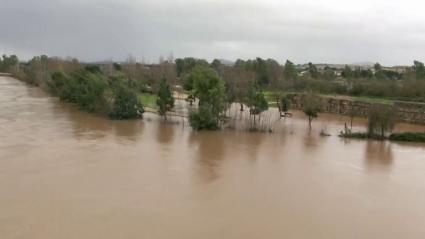 El río Guadiana supera los cutro metros de altura a su paso por Montijo