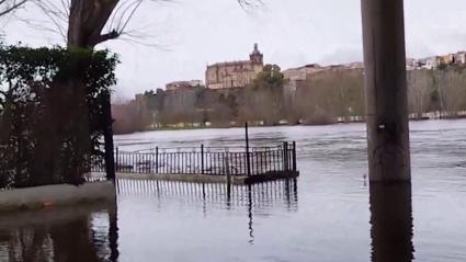 El río Alagón en nivel rojo por riesgo de desbordamiento a su paso por Coria