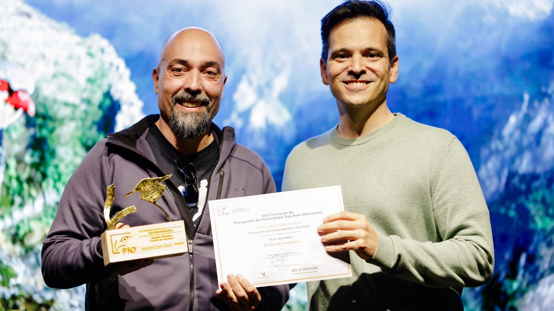 Fernando Prieto García, autor de la imagen 'Perdiz de montaña', gana por segunda vez el premio absoluto del Concurso de Fotografía 'Las Aves Silvestres', convocado por la Junta de Extremadura en el marco de la Feria Internacional de Turismo Ornitológico (FIO).