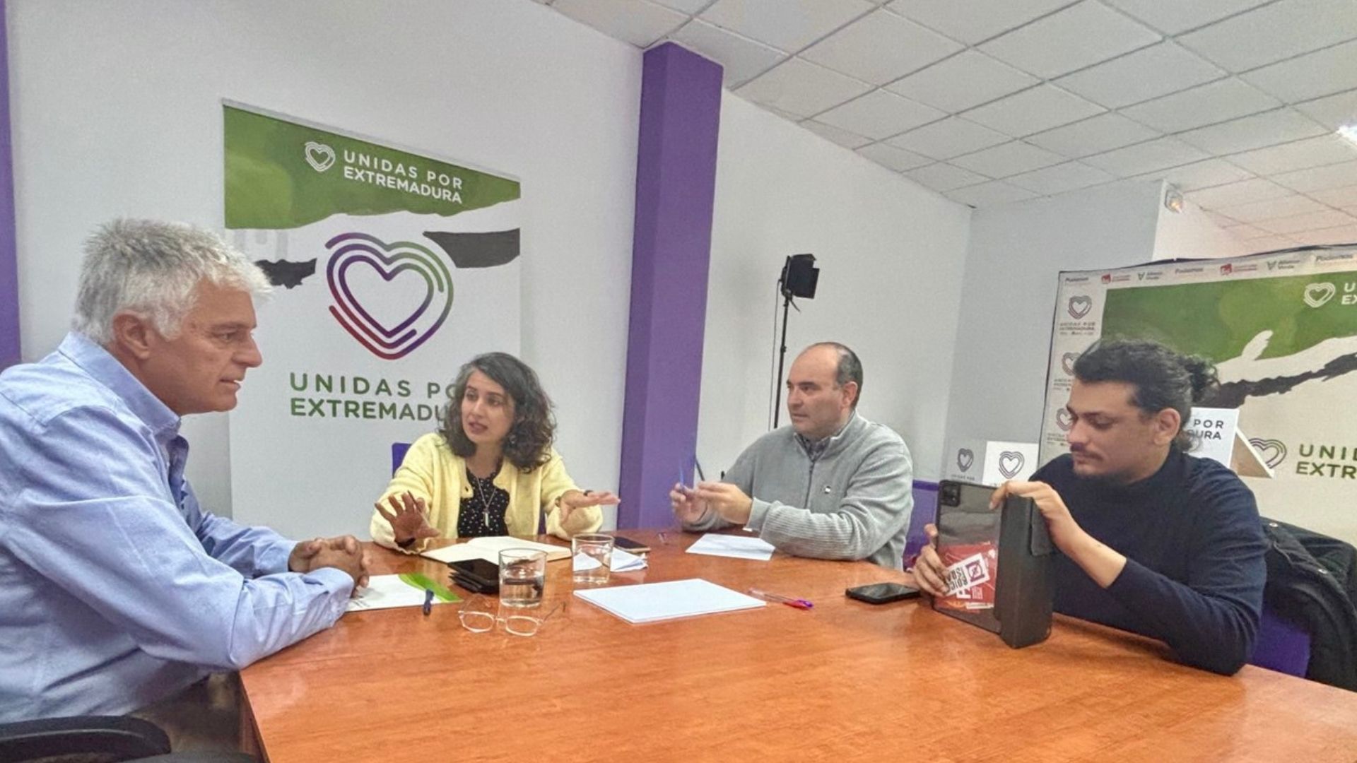 Irene de Miguel, candidata de Unidas por Extremadura a la Presidencia de la Junta, durante su reunión este lunes con Luis Cortés, de La Unión.