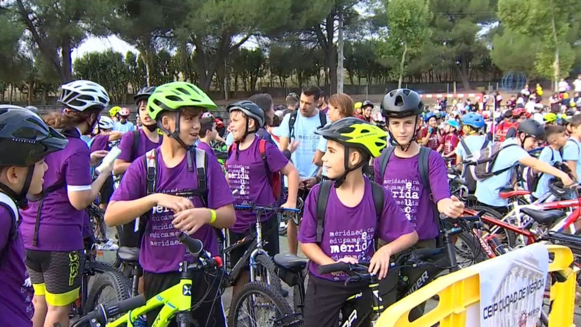 Cascos puestos, bicis listas y muchas ganas de pedalear. Así ha comenzado el Día Escolar de la Bicicleta en Mérida, una jornada en la que más de 900 alumnos y alumnas de 22 centros educativos han cambiado las aulas por las calles de la ciudad para recorrer sus zonas más emblemáticas.