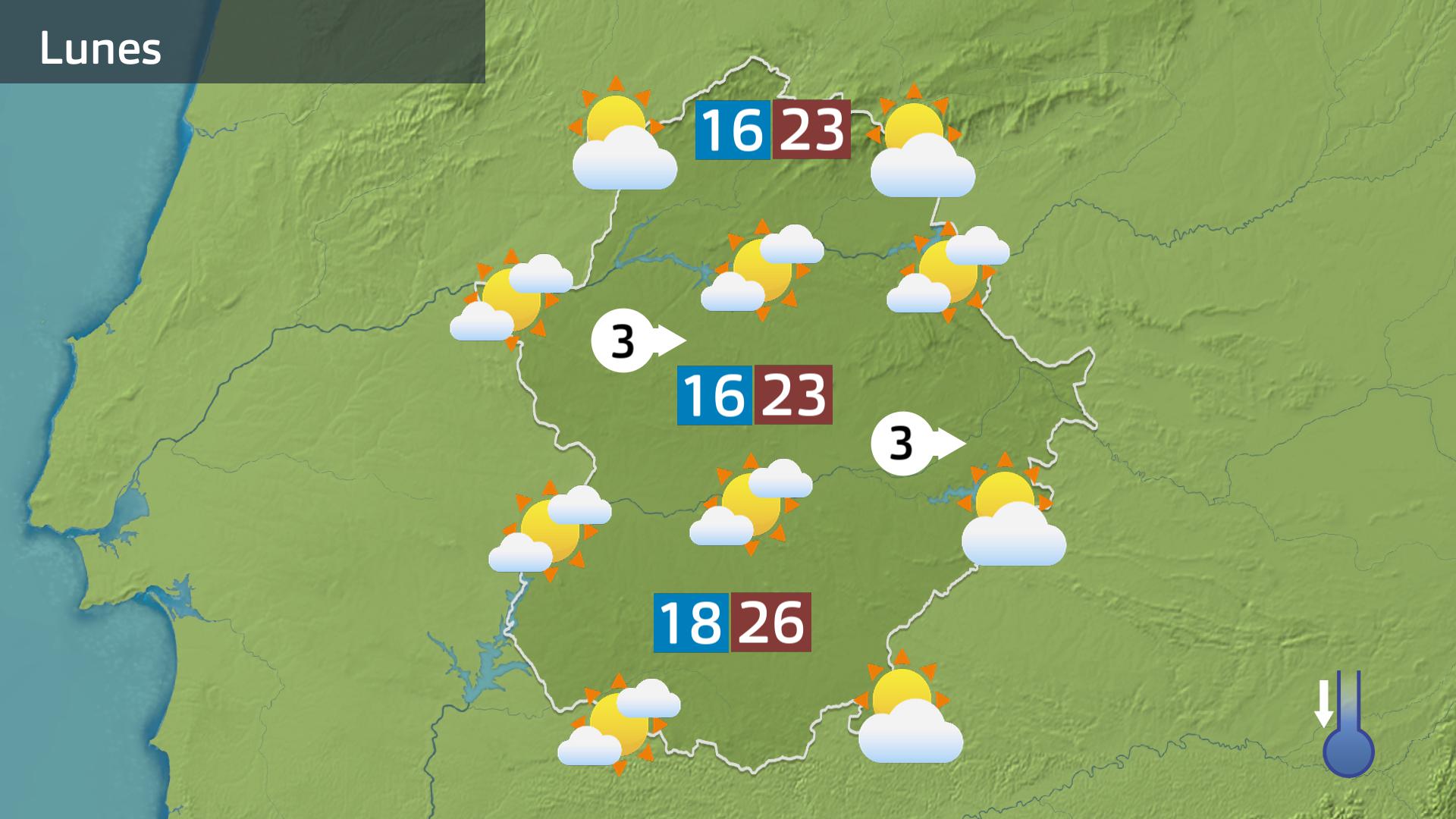 La jornada del domingo nos ha dejado ambiente nuboso en la región, sobre todo durante la tarde. Se han dado algunas lloviznas de carácter débil en zonas de montaña. Las temperaturas han bajado en las dos provincias. Hemos dejado de lado los 30 y pico grados del Guadiana del viernes y del sábado para quedarnos por debajo de los 28ºC. El viento también ha cogido fuerza y se han superado los 40km/h en algunas estaciones.
