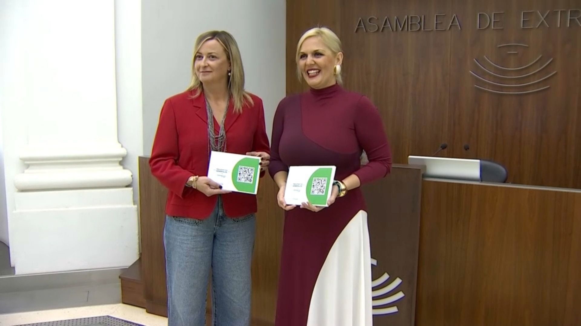 La consejera de Hacienda, Elena Manzano, ha entregado esta mañana el anteproyecto de ley de Presupuestos Generales de Extremadura para 2026 a la presidenta de la Asamblea, Blanca Martín.