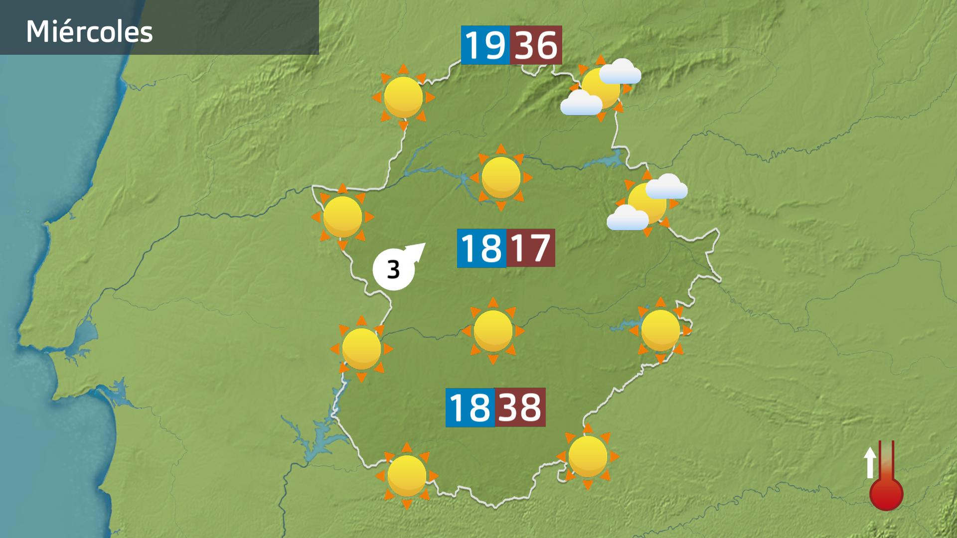 Las mínimas también subirán , pero aún no tendremos una noche cálida. Eso sucederá en noches posteriores. Y en el cielo, el día se quedará despejado aunque el inicio de la mañana estará con algunas nubes altas al norte y este de la región. Nubes que se retirarán y darán paso a un cielo completamente raso. El viento estará soplando del oeste y suroeste por la tarde con rachas mas destacables.