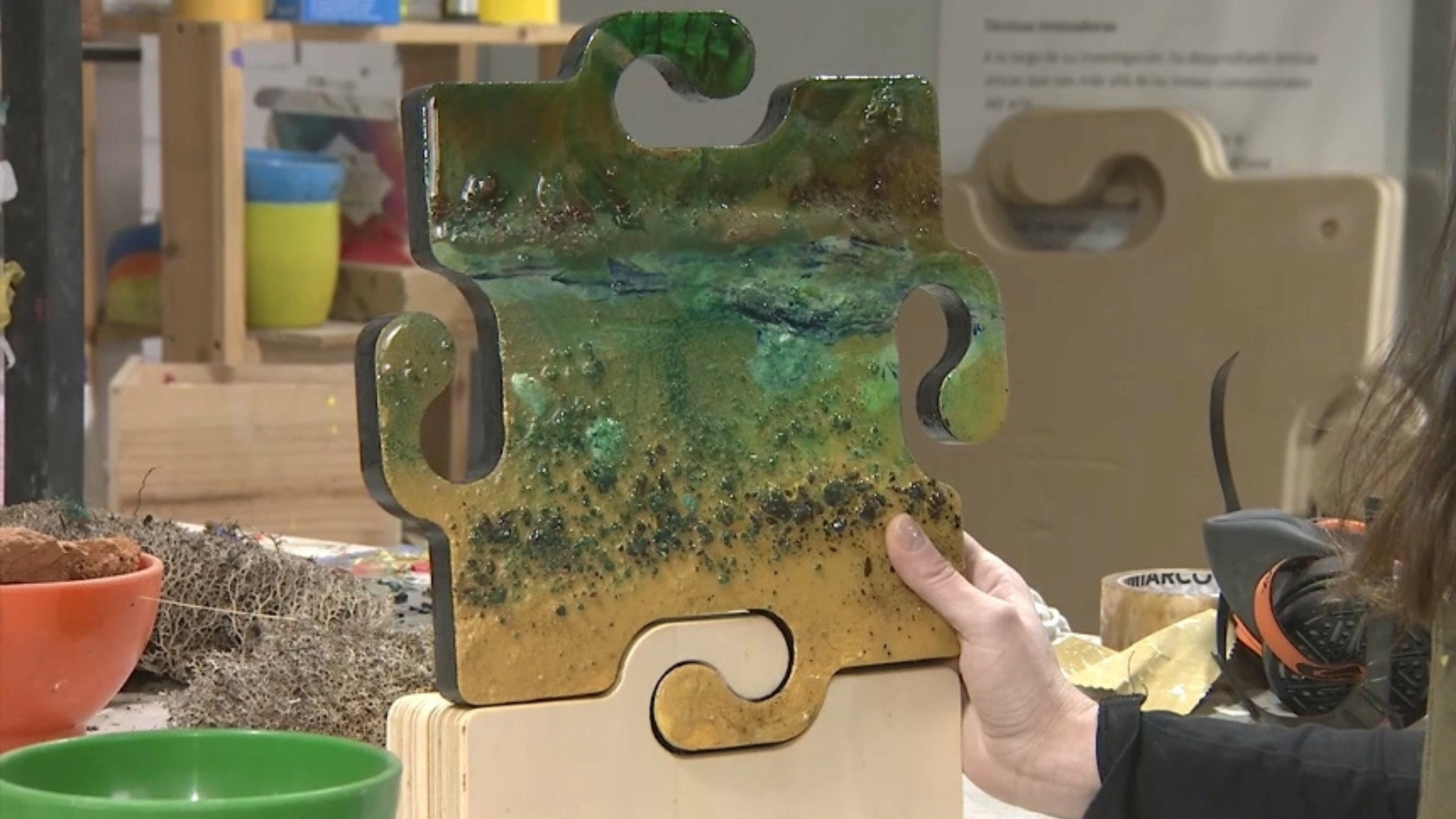De cara a la feria, las piezas cobran vida en el taller de Aloa, donde se ha concebido un diseño muy especial: un puzzle formado por ocho galardones. La obra se creó primero como un conjunto, una sola pieza llena de simbolismo, y posteriormente se dividió en ocho fragmentos individuales. Cada premiado recibirá así un pedazo de la obra original, un fragmento que conserva la esencia del conjunto.