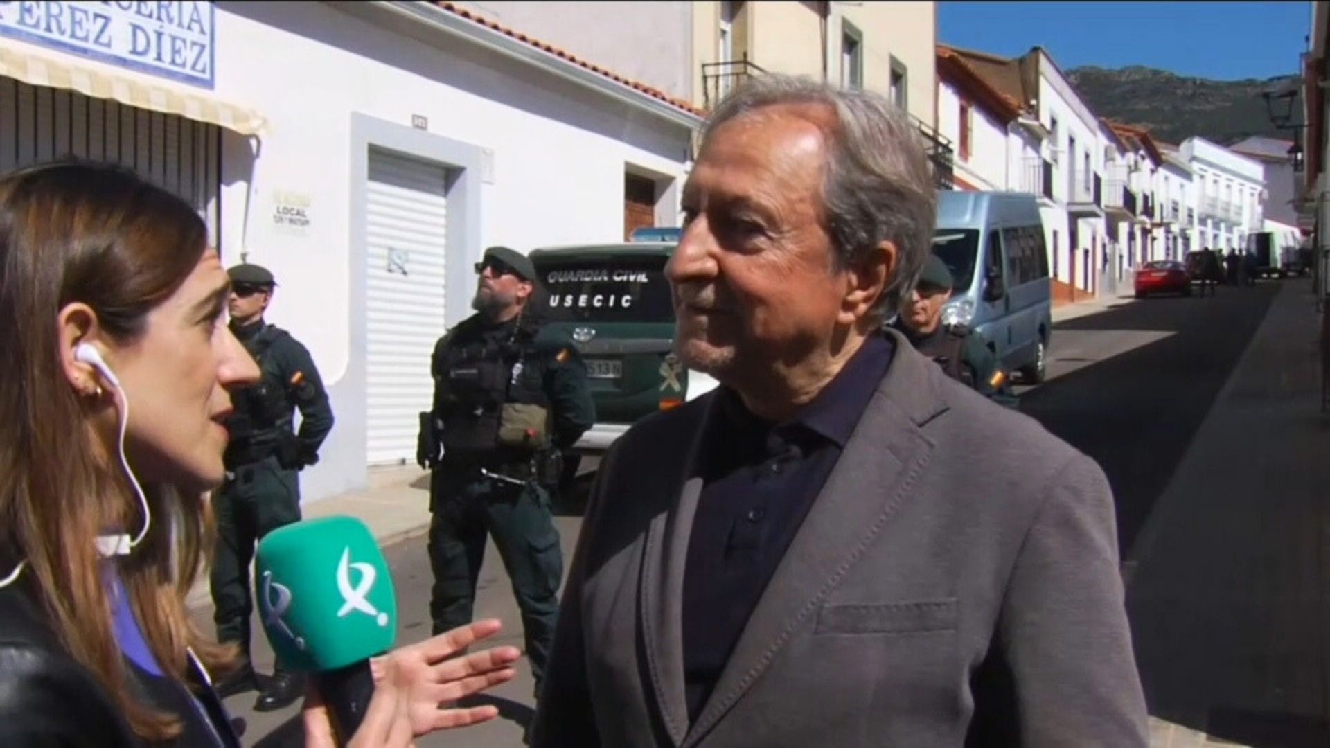 Paco Lobatón visita a la familia de Francisca Cadenas en Hornachos y atiende a los micrófonos de Canal Extremadura.