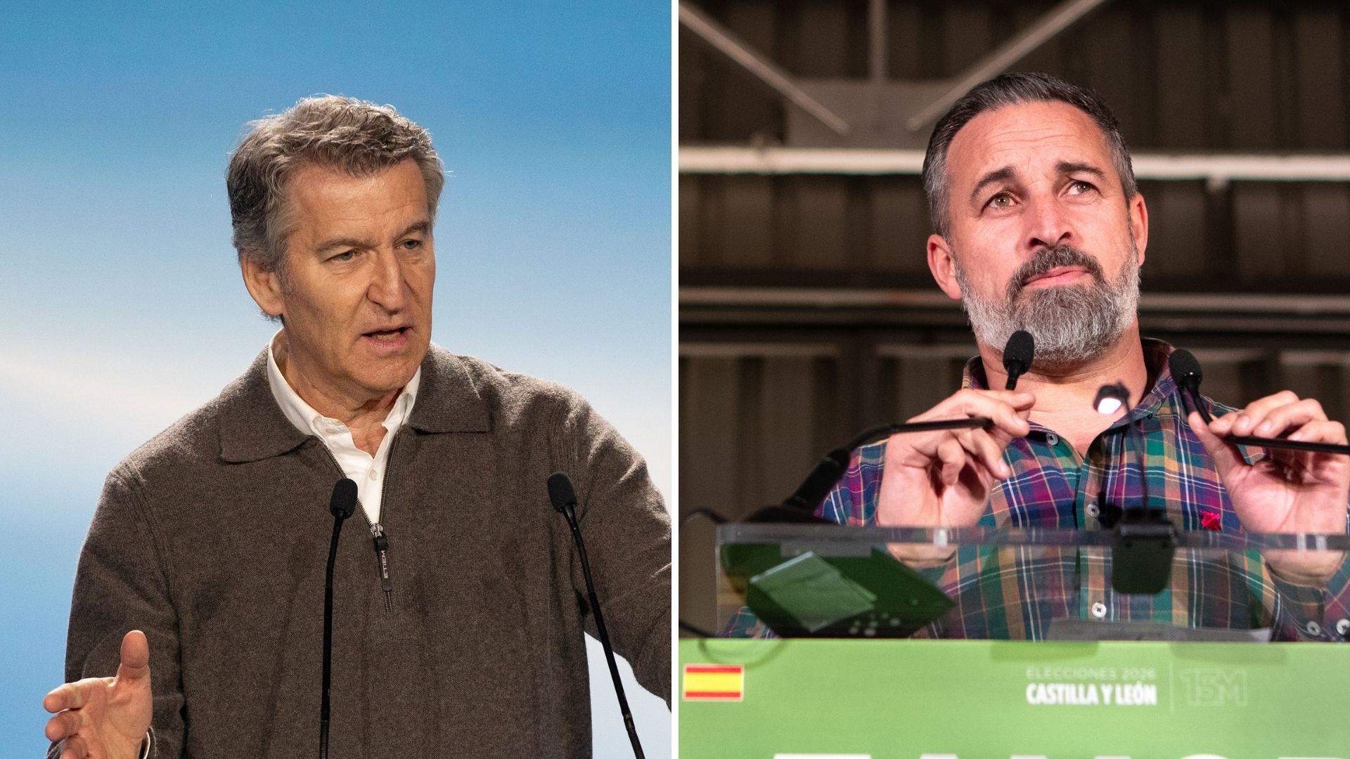 El presidente del Partido Popular, Alberto Núñez Feijóo, y el presidente de VOX, Santiago Abascal.