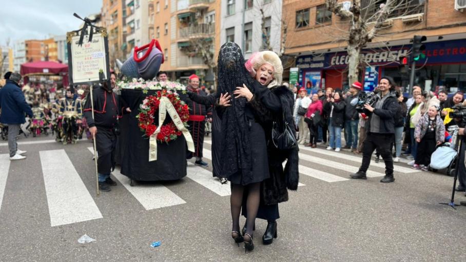 El desfile del Entierro de la Sardina, encabezado por el cortejo fúnebre, ha mantenido su recorrido habitual por la avenida Ricardo Carapeto, en el barrio pacense de San Roque.