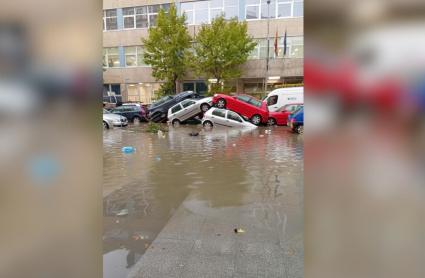 A través de WhatsApp se ha difundido un vídeo que supuestamente muestra las consecuencias de las fuertes lluvias en Cáceres. En las imágenes se pueden ver varios coches amontonados, unos encima de otros, lo que habría sido provocado por el impacto de las precipitaciones. El vídeo sitúa el incidente frente al Edificio de Servicios Múltiples, una zona céntrica, llana y elevada de la ciudad, donde resulta técnicamente muy difícil que se produzca una acumulación de agua de tal magnitud.