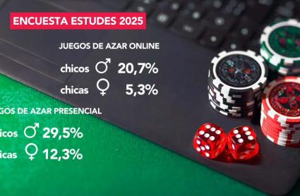 Los juegos de azar forman parte de la vida de muchos jóvenes. El 13% de los estudiantes de secundaria ha jugado a juegos de azar online, y casi el 21% lo ha hecho de forma presencial. Son datos superiores a estudios anteriores, con un incremento del 2%. Además, los chicos juegan más que las chicas: El 20% de ellos juega online y 29% de manera presencial y entre ellas, el 5% juega online y el 12% presencial.