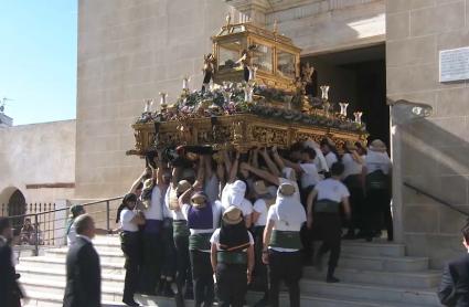 La procesión oficial del Viernes Santo partía a las 17:30 horas desde San Agustín. La hermandad pone en la calle sus dos pasos: Nuestro Señor Jesucristo Yacente y Nuestra Señora de las Lágrimas, reforzando el carácter solemne de la jornada.