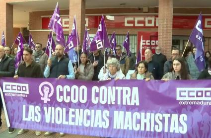 Concentración a las puertas de la sede de CCOO en Mérida con motivo del Día Internacional de la Eliminación de la Violencia contra la Mujer.