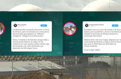Cruce de mensajes en la red social X entre la presidenta de la Junta, María Guardiola, y el secretario general del PSOE regional, Miguel Ángel Gallardo sobre el futuro de la Central Nuclear de Almaraz.