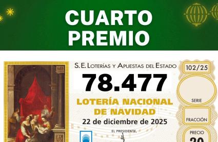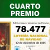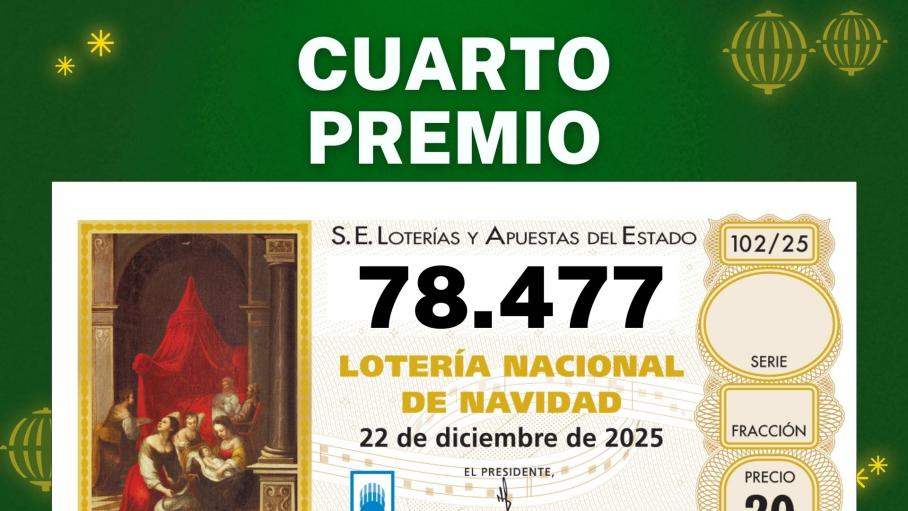 El número 78.477 ha sido agraciado con uno de los cuartos premios del Sorteo Extraordinario de la Lotería de Navidad, dejando una lluvia de millones muy repartida por distintas provincias del país.