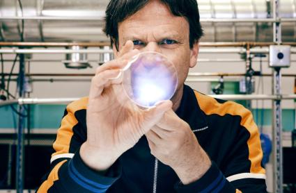 El fundador de la empresa, Martin Roscheisen, con una oblea de diamante
