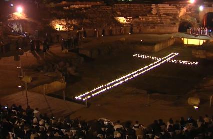 La imagen del Cristo de la O procesionará la próxima madrugada en la Semana Santa de Mérida para el rezo de las Estaciones del Vía Crucis en el Anfiteatro Romano. Se trata de una de las celebraciones de mayor espectacularidad de la Semana de Pasión emeritense, declarada Fiesta de Interés Turístico Internacional, y que mezcla fe y tradición en un escenario patrimonial único.