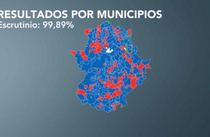 En las grandes ciudades prima el color azul de los populares; el segundo puesto se mantiene en el rojo socialista, en Cáceres, Mérida, Plasencia o Don Benito, pero a poca distancia le sigue Vox, que gana electores frente a los que pierde el PSOE en masa.
