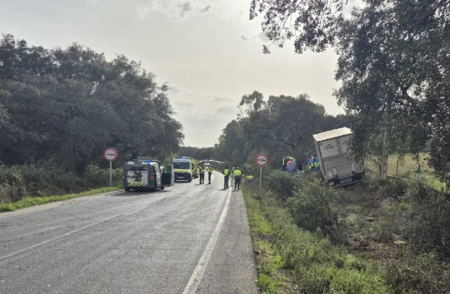 Un varón de 58 años ha fallecido este lunes en la salida de vía de un camión en el punto kilométrico 40 de la EX‑112, en Oliva de la Frontera (Badajoz).