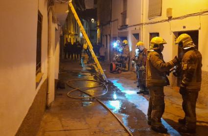Imagen de la actuación de los bomberos del SEPEI en el incendio declarado este 30 de diciembre en Hervás en el que ha resultado fallecido un hombre de 83 años.