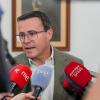 Miguel Ángel Gallardo, líder del PSOE extremeño, atiende a los medios en el inicio de una ronda de reuniones con los agentes sociales de cara a las Elecciones del 21 de Diciembre.