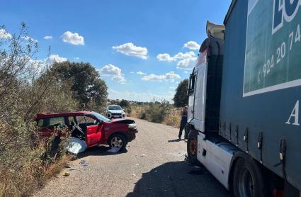 Imagen tomada tras la colisión entre un coche y un camión en Alburquerque