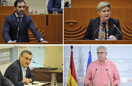 De izquierda a derecha y de arriba a abajo: Álvaro Sánchez Ocaña, de VOX; Soraya Vega, del PSOE; José Manuel García Ballesteros, del PP; Joaquín Macías, de Unidas por Extremadura.