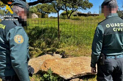 Según indica la Guardia Civil, la “presión policial” y la “exhaustiva inspección” del área, realizada con la colaboración del Ayuntamiento de Nogales, llevaron al investigado a colaborar en la localización de las estelas.