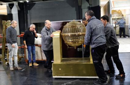 Justo cuando faltan diez días para la celebración del sorteo, los bombos y las bolas que repartirán la suerte; la tolva, que transportará las bolas desde las liras hasta el bombo; o la trompeta, desde la que saldrán las bolas hasta la copa, han hecho entrada en el coliseo madrileño a primera hora.