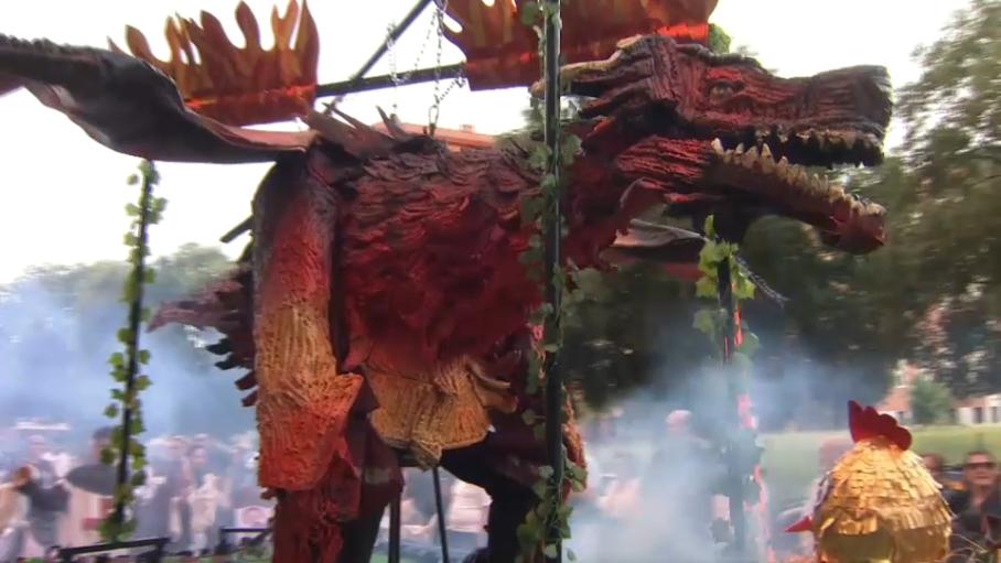 En total, serán trece actores principales los que representarán la leyenda de San Jorge, y otra veintena que intervendrán en momentos puntuales y escenas concretas, y, por supuesto, el gran dragón municipal, una figura de catorce metros de largo.