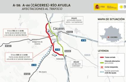 Corte total de la A‑66 este sábado a la altura de Cáceres