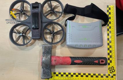 En una de las viviendas, que cuenta con un sistema de alarma, solo lograron robar un juego de llaves de otro inmueble, ya que, tras acceder al interior, se accionó la alarma y tuvieron que desistir para no ser sorprendidos in fraganti. De estos hurtos y robos, los responsables sustrajeron diversos objetos, entre los que se encuentran dos televisores, un teléfono móvil, una radio de comunicación a distancia, un dron, gafas de realidad virtual, un toldo y dos casullas del párroco de la capilla.
