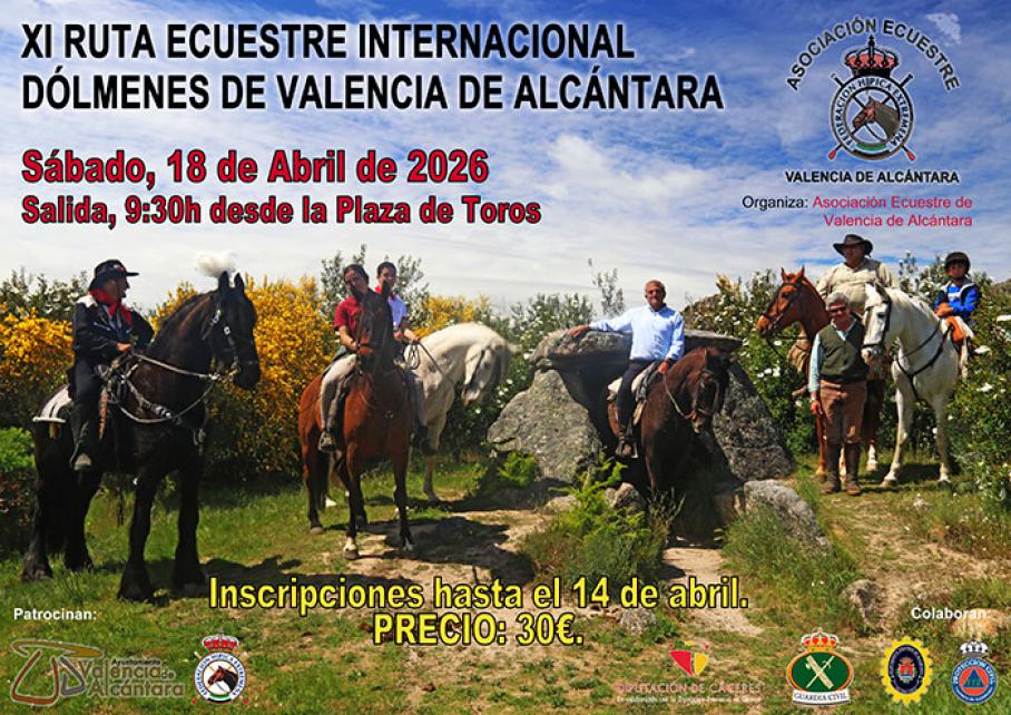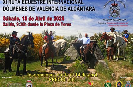 La XI Ruta Ecuestre Internacional Dólmenes de Valencia de Alcántara se celebrará en el entorno de dicha localidad cacereña el próximo 18 de abril.