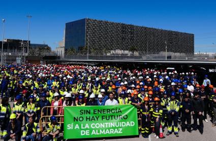 Representantes del comité de empresa, trabajadores de la Central Nuclear de Almaraz y de la recarga, junto a miembros de la plataforma ‘Sí a Almaraz, Sí al Futuro’, se han concentrado a las puertas de la instalación para reclamar su continuidad y exigir una decisión que garantice el futuro industrial, energético y social del entorno.