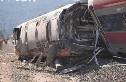 Por esa segunda vía circulaba el Alvia 2384, con destino Huelva y 184 pasajeros. El impacto entre ambos trenes provocó que los dos primeros coches del Alvia cayeran por un talud de cuatro metros, quedando convertidos en un amasijo de hierros que dificultó el rescate durante días. La mayoría de las víctimas mortales y heridos viajaban en este convoy de Renfe, que recibió el golpe directo de los vagones descarrilados del Iryo.