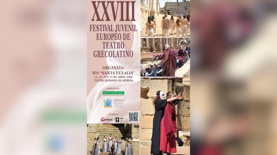 El Teatro Romano de Mérida será escenario, del 14 al 17 de abril de 2026, de la XXVIII edición del Festival Juvenil Europeo de Teatro Grecolatino, una cita cultural y educativa organizada por el IES Santa Eulalia que reunirá a grupos teatrales de distintos puntos del país integrados, en su mayoría, por alumnado de Educación Secundaria.
