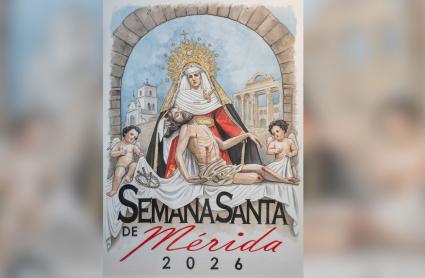 La Junta de Cofradías de Mérida ha presentado esta tarde el cartel anunciador de la Semana Santa 2026, protagonizado por la imagen de la Santísima Virgen de las Angustias, perteneciente a la Cofradía Ferroviaria.