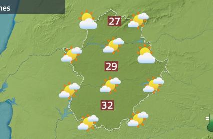 Todo en un lunes, que se presenta de nuevo soleado en todas las comarcas, aunque hoy con el cielo ya algo más enmarañado. Desde el suroeste comienzan a colarse algunas nubes altas que a medida que avance el día acabarán por tener ya mucha más presencia en toda Extremadura