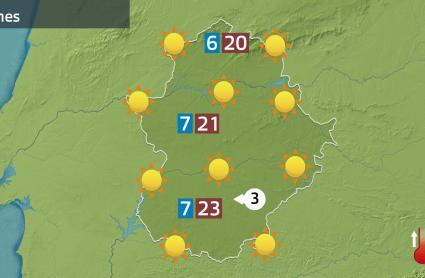 La tarde del domingo ha estado dominada por el tiempo soleado en toda la región, lo que ha ayudado a que las temperaturas máximas hayan subido entre 6 y 8ºC en buena parte de las comarcas. Hemos llegado los 21ºC en Badajoz y en Mérida, los 20 en Coria, Don Benito, Olivenza y Navalmoral de la Mata; los 18 en Cáceres, Jerez de los Caballeros, Zafra y en Plasencia.