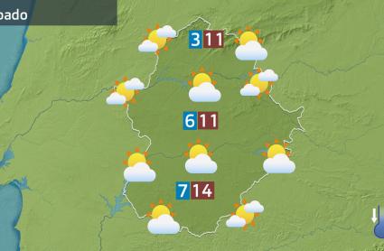 Así, la jornada del sábado comenzará con una bajada de las temperaturas mínimas, pero no hablaremos de valores tan bajos como los de hace unos días. De hecho, no parece que vaya helar. Las máximas también notarán un ligero descenso. A primeras horas repetirán los bancos de nubes bajas y las nieblas puntuales en las comarcas más orientales de la provincia pacense. Llegarán intervalos nubosos de tipo medio y de tipo alto que velarán los cielos. El viento será del oeste, pero menos intenso que el de hoy.