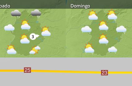 El sábado se concentrarán las precipitaciones en el norte de la región. La mañana empezará con algo más de lluvia en la mitad norte, pero a lo largo del día se concentrarán en el Sistema Central. De hecho está activado el aviso amarillo por acumular 40 mm en 12 horas hasta las 6 de la tarde. Las temperaturas descenderán en esa zona 4 ºC y en el resto se mantienen sin cambios.