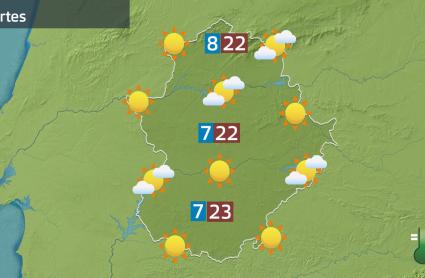 La tarde del martes ha dejado un repunte al alza en los termómetros de la región. Las máximas han pasado de los 20ºC en numerosos municipios; hasta 25 se han alcanzado en Mérida y en Badajoz. También se ha desarrollado nubosidad de evolución en las sierras del centro y del sur, pero más desorganizada que en la jornada de ayer.