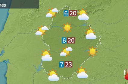 Así, la jornada del lunes comenzará con tiempo estable en la región. Se colarán nubes de tipo alto por el norte. A partir de mediodía aparecerán nubes de evolución, sobre todo en las montañas del sur. La probabilidad de que descarguen es baja. Las mínimas no experimentarán cambios relevantes, mientras que las máximas subirán un poco más. Serán muchos los municipios extremeños que pasen de la marca de los 20ºC en la primera mitad de la tarde.