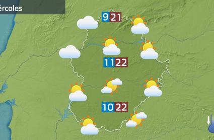 Las temperaturas tendrán algunos cambios con respecto a los de hoy. Sobre todo las mínimas porque se recuperarán, principalmente en zonas de montaña. Suben de forma general y las máximas bajarán hacia la mitad sur de la región. Ya no alcanzaremos valores próximos a los 25º C, pero sí superaremos los 20 ºC.