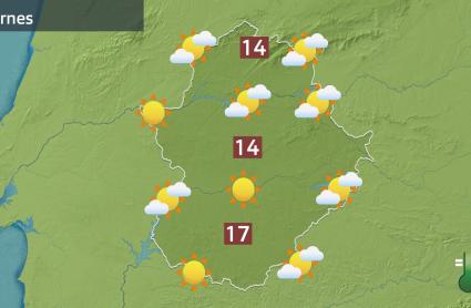 Para lo que resta de jornada llegarán más nubes de tipo alto desde el norte. Serán más abundantes en la provincia cacereña donde, incluso, podrán dejar los cielos velados. En cualquier caso, no dejarán precipitaciones. Las temperaturas, al igual que ayer, pasarán de los 15ºC en las vegas tanto del Tajo como del Guadiana. El viento soplará flojo de componente norte.