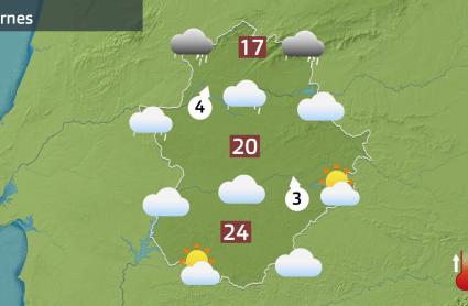 Fuera de este tercio norte el frente será mucho menos efectivo y aunque a lo largo de esta primera mitad de la jornada o en el tramo central del día sí veremos algunas precipitaciones también por otras zonas de la mitad norte y del oeste de Extremadura o de manera más puntual aún en algunas zonas de sierra hacia la mitad este de lo que hablaremos hoy en general, será de un día nuboso pero con pocas precipitaciones e incluso con algunos tímidos claros por el tercio sur y el sureste.