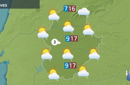 Por una parte ese frente, según vaya avanzando desde el oeste, dejará por la tarde algunas precipitaciones que serán más bien intermitentes pero localmente acompañadas de tormenta prácticamente en cualquier punto de la región. La mañana estará más tranquila.
