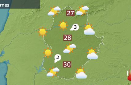 Y aunque las máximas no dejarán muchas novedades, para esta tarde sí hablaremos ya de temperaturas sobre todo por el suroeste, que acabarán por pasar del umbral de los 30 grados en algunas estaciones.