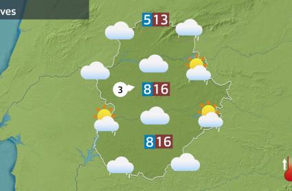 Las temperaturas tenderán a subir en general entre 1 y 3 grados, e incluso hasta 4 ºC más que hoy en as comarcas del sur de la región. Lo harán tanto máximas como mínimas, por lo que la noche será menos fría. El cielo se quedará muy nuboso durante todo el día y el viento soplará del oeste con rachas que pueden alcanzar los 30 km/h en cualquier comarca.